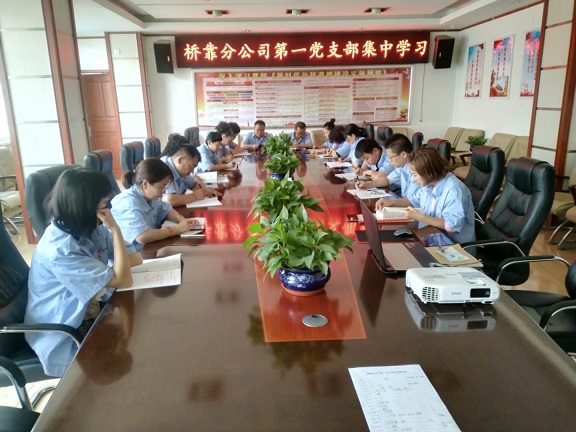 8月13日下午,橋靠分公司第一黨支部組織黨員、預備黨員、發展對象、積極分子22人在三樓會議室進行集中學習。