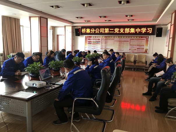 11月19日下午,橋靠分公司第二黨支部組織黨員、預備黨員、發展對象、積極分子集中學習,第二黨支部書記尹潔主持會議。