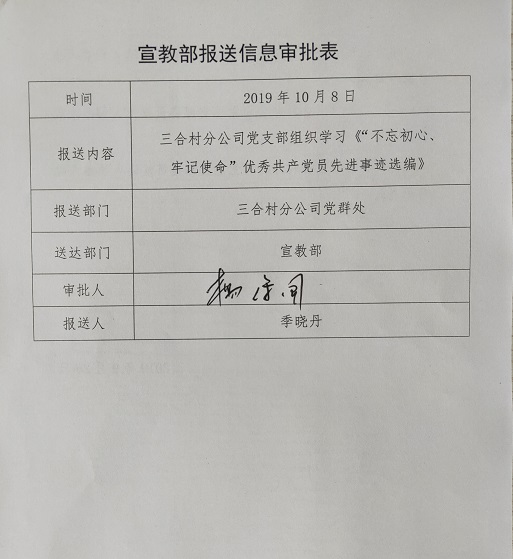 三合村分公司黨支部組織學習 《“不忘初心、牢記使命”優秀共產黨員先進事跡選編》