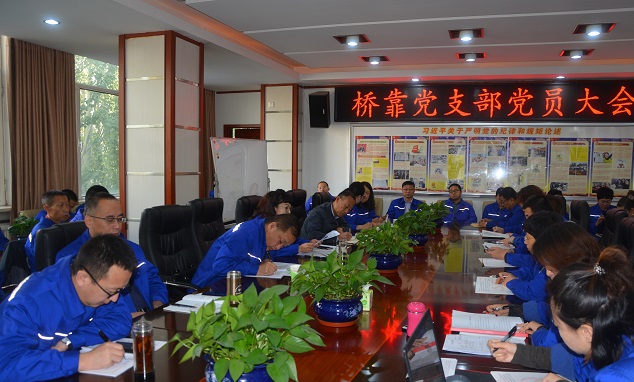 10月11日上午9點,橋靠分公司黨支部組織黨員、預備黨員、發展對象、積極分子65人在行政樓三樓會議室召開黨員會議。城發公司總經理呂德育同志、黨委副書記張永同志參加會議,紀檢監察室工作人員監督指導,黨支部書記趙怡春同志主持。