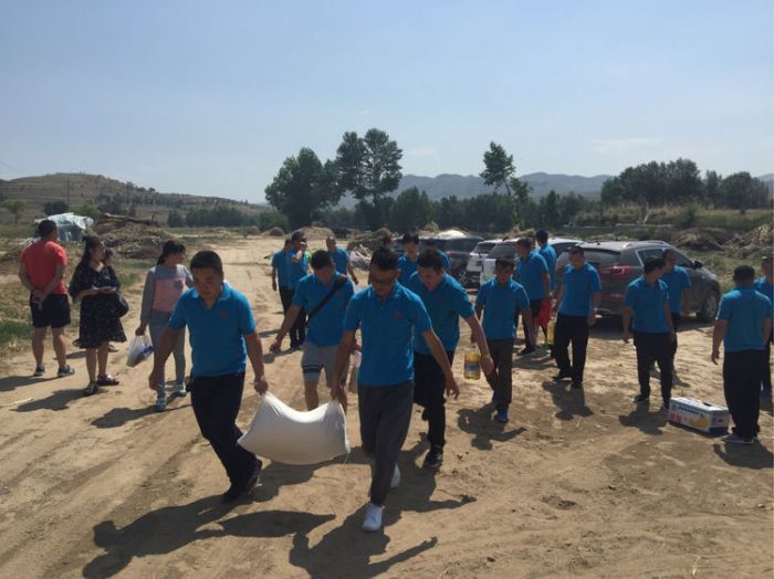 6月14日,橋靠供熱分公司司爐車間全體員工前往清水河縣楊家窯鄉楊家窯村,貧困家庭蘇玉霞一家進行愛心助學活動。