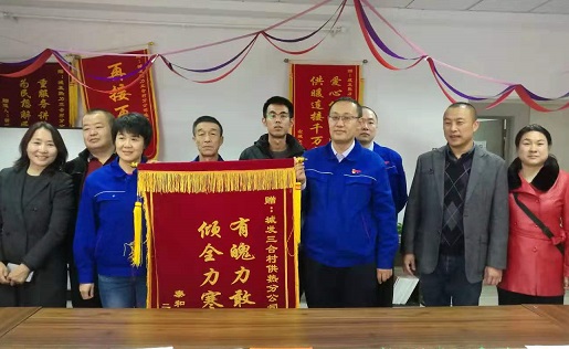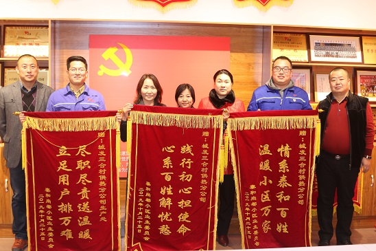 11月1日,泰和尚都小區熱用戶代表將一面火紅的錦旗送到三合村分公司,以此表達分公司對該小區二次管網改造提供的優質服務表示感謝。