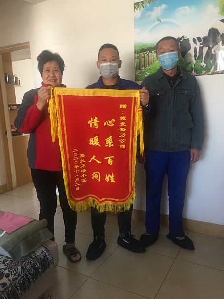 11月4日,橋靠分公司對侯女士家進行了回訪,經測溫客廳23℃、南臥24℃、北臥23.5℃。在侯女士家測溫后,侯女士拿出表示感謝的錦旗,送到了沈瑞峰與陳俊的手中。