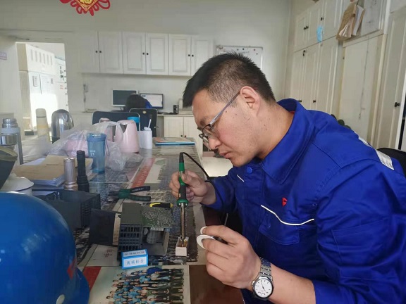孫英全是電儀車間的技術骨干,2001年入廠,這是他堅守的第20個春節了,2021年的第一班崗,他仍然沒有回河北省懷安縣西沙城老家過年。問及他沒有回家有何感受,他說:“春節期間,廠里的事情都比較多,另外不回家過年也是不給國家找麻煩,不給廠里添麻煩,對自己家里也是好的。我給家里打個電話拜年就好,他們都能理解。”這不,他又忙著為左右城循環泵啟停頻繁而親臨現場了,專注的孫師傅絲毫沒注意到周圍同事的拍攝。
