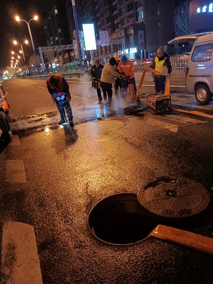 閥門關閉完后,搶修人員返回現場,開啟閥門井泄水閥進行排水作業,此時已是晚上10點多。