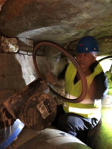 另一邊,副經理鄭紅飛帶領生產處、施工單位等相關部門加緊排查,最終確定漏水點為泄水井內DN100閥門與管道連接處,該處由于腐蝕造成漏水。找到漏水點后,組織制定了搶修方案后,開始搶修作業,更換已腐蝕的閥門及管道。