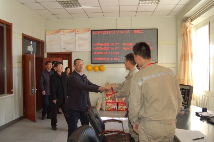 臘月二十九,黨委書記、總經理張瑞平,黨委副書記、工會主席張永,黨委委員、副董事長杜雄勇,黨委委員、副總經理史繼文4人率隊,分別到四個供熱分公司,深入車間、運營所、收費大廳、熱力站,對一線員工進行了慰問。(文/亞利)