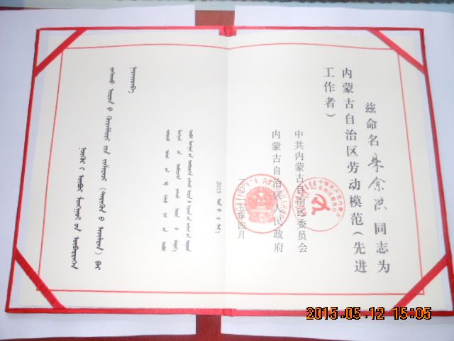 ——榮獲2015年度自治區勞動模范的朱余洪同志