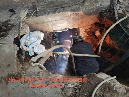 12月4日早上,運營一所巡站人員發現電信四分局熱力站一次網進站管道附近有熱氣冒出,確定為一次網供水管道發生泄漏。搶修工作于下午六點完工,并恢復供熱。